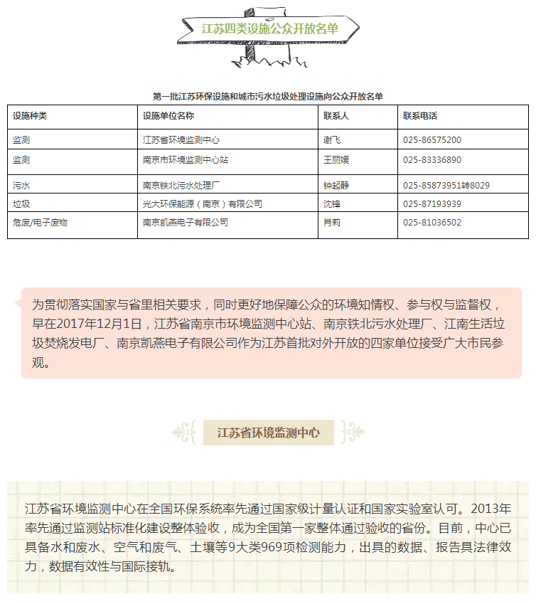 名单公布!江苏这四类环保处理设施向公众开放,快来电话预约!