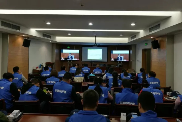 十九大代表、省环境监测中心副主任胡冠九给守护者讲授环境监测的专业知识和基本技能