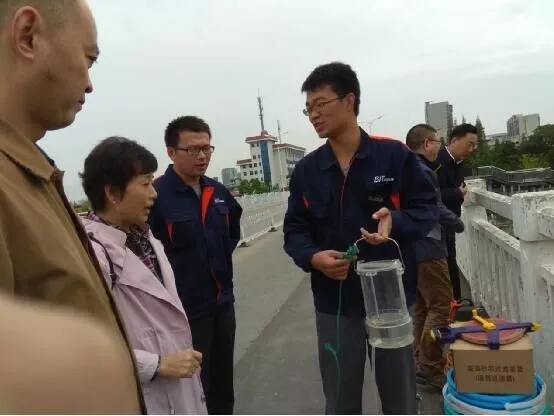 “你们现在用的是2升的采样桶,这个断面要同步监测,需要采集20多项指标,要采好多次才能开始进行沉淀,建议你们选择大容量的采样设备。”10月17日上午9点半,盐城串场河大庆路桥断面,江苏省环保厅监测处处长王华仔细询问第三方监测公司的采样人员相关情况,要求第三方公司一定要按规范进行采样。
